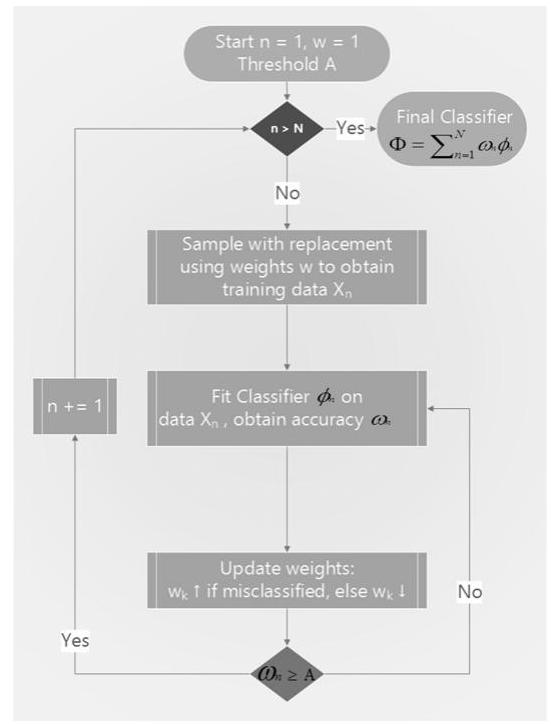 are decided by the individual estimators' accuracy There are several boosting algorithms, one of which is AdaBoost (Geron [2017]). The decision flow of a typical AdaBoost implementation is depicted in Figure .